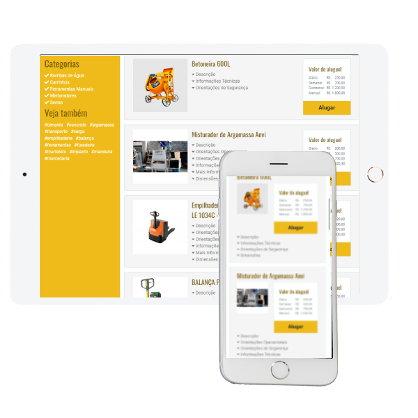 E-commerceComodidade, agilidade, segurança e mais opções na hora de locar os equipamentos de sua locadora, são características que são valorizadas pelos consumidores. O mercado de e-commerce está crescendo a cada dia. Aumente a visibilidade e o alcance de sua locadora. Com uma loja de locação virtual no ar, seus clientes terão um acesso facilitado para locar os equipamentos podendo fazer o pedido de locação a qualquer momento do dia. |